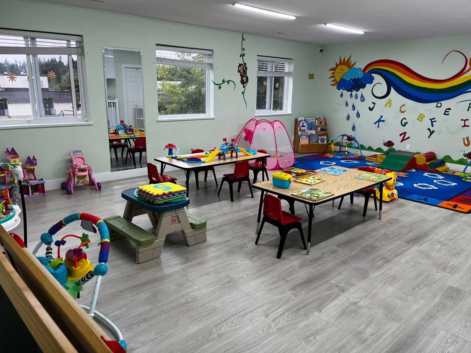 Our Langley daycare classrooms are designed to give children a safe, supportive, and stimulating place to learn and grow. Each space is bright and welcoming, with age-appropriate materials, colorful activity areas, and plenty of room for both play and quiet moments. We believe children thrive in an environment that balances structure with creativity. Our classrooms include everything from cozy reading corners to hands-on art and learning stations. Safety is built into every detail – from secure furnishings and open layouts to attentive supervision – giving parents peace of mind while their children explore with confidence. These photos provide a glimpse into the caring, engaging atmosphere we’ve created to help children build curiosity, independence, and a lifelong love of learning. Click HERE to learn more about our childcare programs.